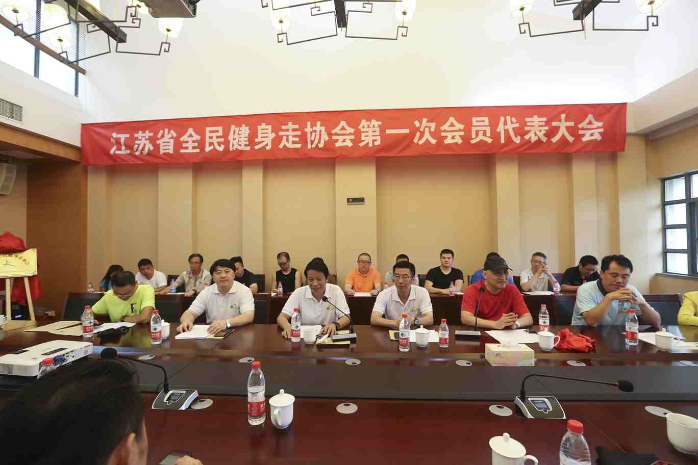 活動結(jié)束后,省體育局局長陳剛和“江蘇省全民健身走協(xié)會”會長、我公司黃承斌董事長為協(xié)會揭牌。隨后還召開了“江蘇省全民健身走協(xié)會第一次會員代表大會”,省體育局副局長顏爭鳴、省體育局副巡視員呂衛(wèi)東等領導出席會議,我公司及其他數(shù)十家會員單位列席。會議由協(xié)會秘書長、南京體育學院孫彪教授主持。會上顏爭鳴副局長,協(xié)會會長、我公司黃承斌董事長分別發(fā)表講話。顏局長對協(xié)會成立表示祝賀,希望協(xié)會在今后推動江蘇省全民健身工作中發(fā)揮積極作用。黃總表示協(xié)會成立后,將以服務全民健身為使命,為喜愛健步走、慢跑和戶外徒步的群眾組織內(nèi)容豐富、形式多樣的活動,提供科學、專業(yè)的健身指導和服務,積極宣傳推廣健步走、慢跑等經(jīng)濟環(huán)保的健身方式,為江蘇省全民健身事業(yè)的發(fā)展貢獻一份力量,增添新的活力!